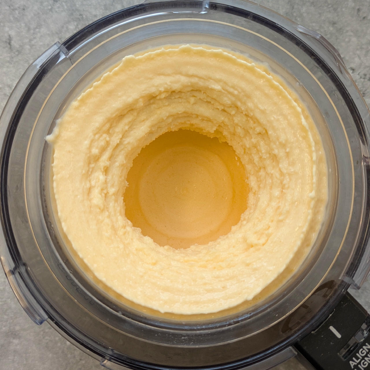 To fix that, after the 1st (main) processing step, run cold tap water (20..25°C) over the container, tilted a little to the side and while turning it to treat the container wall fully. Do that for 15..30 seconds, depending on the consistency of the base.
